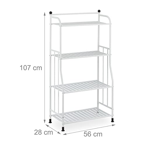 Relaxdays Scaffale in Metallo, HxLxP: 107 x 56 x 28 cm, Mobiletto Cucina e Bagno, 4 Ripiani, Mensole Multiuso, Bianco