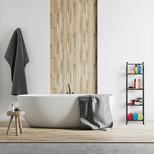 Relaxdays Scaffale in Metallo, HxLxP: 115 x 33 x 28 cm, Mobiletto Cucina e Bagno, 4 Ripiani, Mensole Multiuso, Nero, Lega di Acciaio