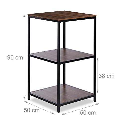 Relaxdays Scaffale Quadrato, 3 Ripiani, Struttura in Metallo, Moderno, Multiuso, HxLxP: 90 x 50 x 50 cm, Effetto Legno