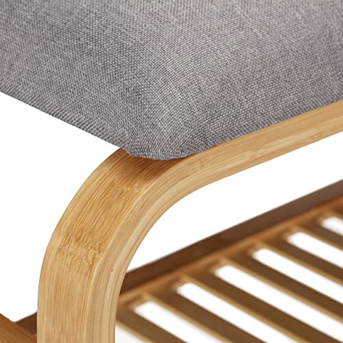 Relaxdays Scaffale Scarpiera da Ingresso, con Panca Imbottita, 3 Paia, Guardaroba, Camera, Porta Scarpe, 46x69x30 cm, Naturale, bambù, Tessuto, 1 pz