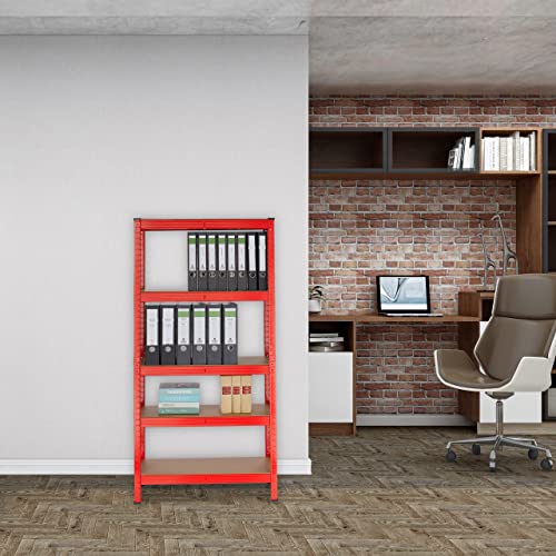 Relaxdays 2x Scaffale con Sistema a Incastro, fino a 875 kg, Scaffalatura ad Alta Portata 5 Ripiani, 151x75x30 cm, Rosso
