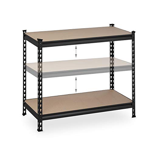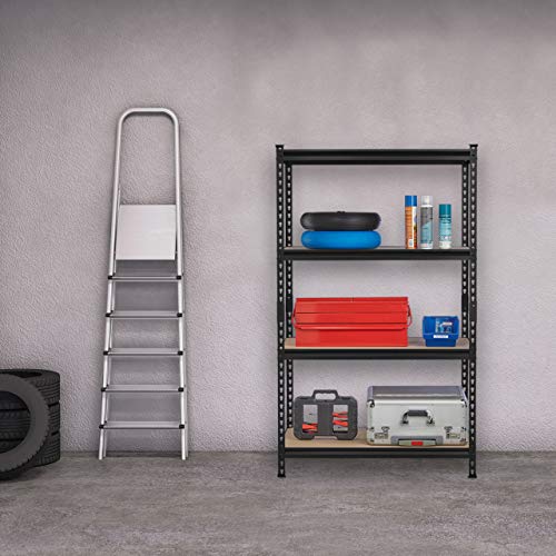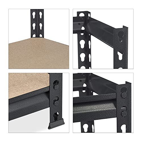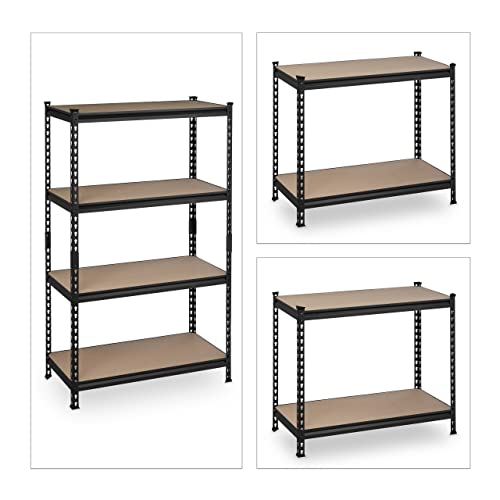 Relaxdays Scaffali in Metallo, HLP: 153x91x46 cm, 4 Ripiani, Portata 1440 kg, Scaffalatura Garage, Acciaio e MDF, nero