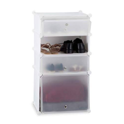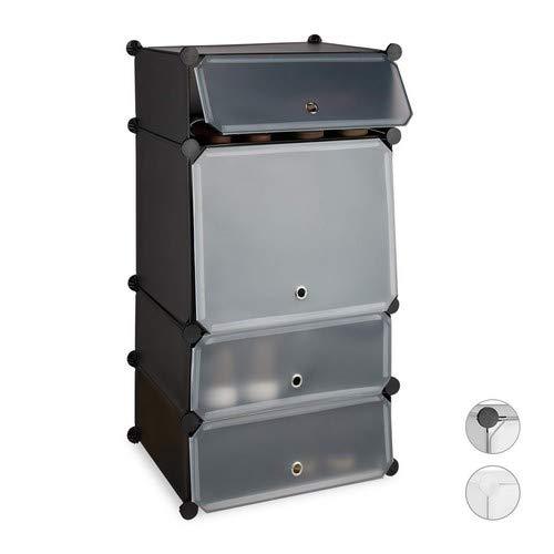 Relaxdays Scarpiera in Plastica, 4 Scomparti Chiusi, 91x49x36,5 cm, Scaffale 8 Paia di Scarpe, Componibile, Nero, 91 X 49 X 36,5 Cm