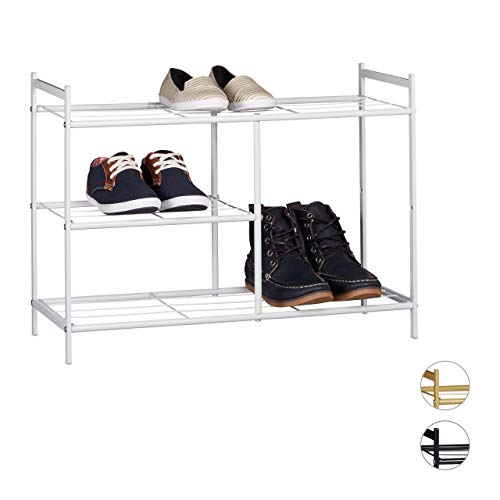 Relaxdays Scarpiera 3 Ripiani in Metallo, 8 Paia Scarpe 50,5 x 70 x 26 cm, Scaffale Ingresso Salvaspazio, Marrone Chiaro