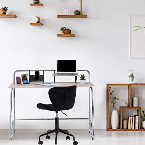 Relaxdays Scrivania con Design Effetto Quercia, 2 Ripiani, Tavolo Da Ufficio HLP 96x120x60cm, Argento-Legno Naturale