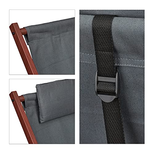 Relaxdays Sedia Sdraio Pieghevole e Regolabile, 3 Posizioni, Cuscino, Legno di Faggio e Tessuto, Marrone e Antracite, plastica, 1 pz