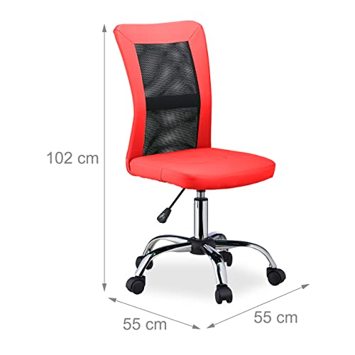Relaxdays Sedia da Ufficio, Altezza Regolabile Girevole Comoda Carico Max 90 kg HxLxP: 102 x 55 x 55 cm, color rosso