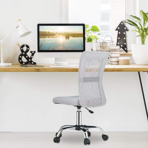 Relaxdays Sedia da Ufficio, Regolabile in Altezza, Ergonomica, Ruote, Scrivania, Schienale a Rete, Fino a 90 kg, Grigia, Metallo, Tessuto, plastica, 1 pz
