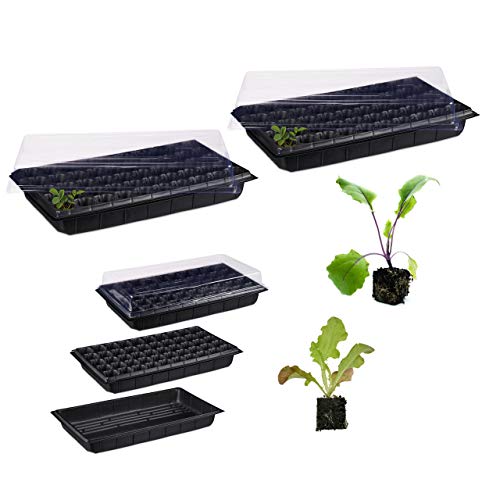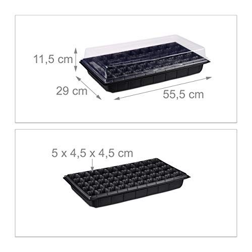 Relaxdays Mini Serra da Interni 50 Piante, con Coperchio, Mini Semenzaio, da Balcone, per Germinazione 5 x 55,5 cm, Nero