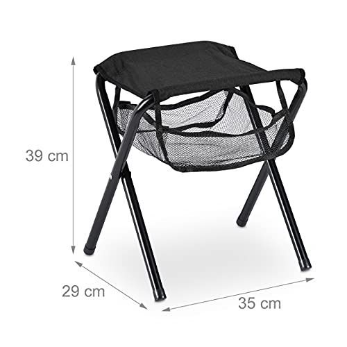 Relaxdays Sgabello Pieghevole, con Borsa, Max. 120 kg, Portatile, Leggero, da Campeggio e Pesca, HLP: 39x29x35 cm, Nero, 1pz