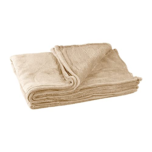 Relaxdays Soffice Coperta, Grande Plaid da Letto e Divano a Pile, Lavabile a 30°C HLP: 1 x 150 x 200 cm, Beige, Poliestere, Bianco, Singolo, 150 x 200 cm