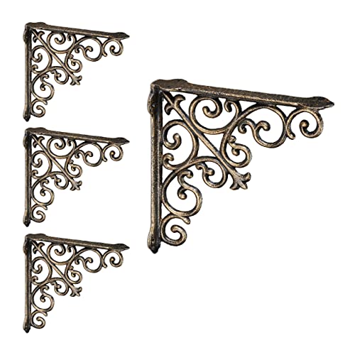 Relaxdays 8X Staffe per Mensole, Supporti dal Design Barocco, Reggimensola Angolari per Scaffali, Vintage, Bronzo
