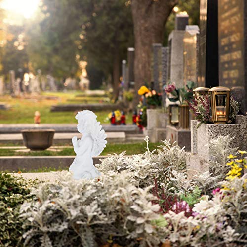 Relaxdays Statuetta Decorativa a Forma di Angelo, in Preghiera, Resistente, per Giardino, Pietra Artificiale, Bianco