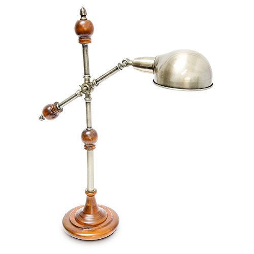 Relaxdays Streampunk Lampada da Scrivania, Regolabile, Abat Jour/Legno, Argento