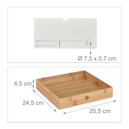 Relaxdays Supporto per Monitor, Rialzo per Schermo con 4 Scomparti e 2 Cassetti, Stand, HLP 12x56x27 cm, Bianco/Naturale, 80% bambù 20% Fibra