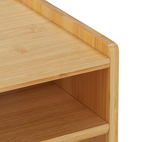 Relaxdays Supporto per Monitor da Scrivania, Rialzo per Schermo PC, Cassetto e 5 Scomparti, HLP 13x70x19 cm, Naturale, 90% bambù 10% Fibra di Legno