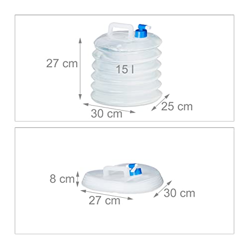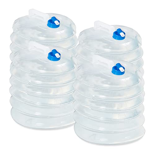 Relaxdays Tanica Pieghevole,Set 4 Contenitori con Rubinetto,Coperchio, Manico,BPA-Free, 15 Litri, Trasparente Blu, 8 x 27 x 30 cm