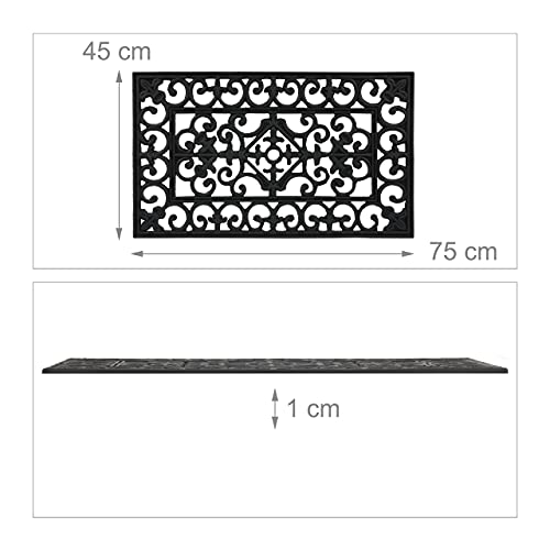 Relaxdays Tappeto di Gomma da Esterno, 75x45cm, Antiscivolo, Zerbino Ingresso, Porta di Casa, Interni, Ornamentale, Nero