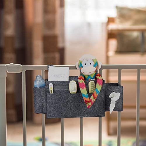 Relaxdays Tasca Portaoggetti da Letto, 8 Scomparti per Accessori Bambini & Anziani, Organizer da Appendere, Grigio Scuro, 1 pz