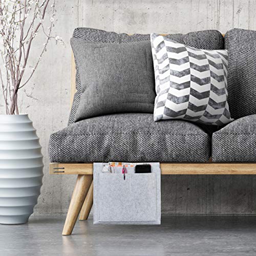 Relaxdays Tasca Portaoggetti da Letto, 5 Scomparti da Appendere, Portatelecomandi Divano, Organizer Feltro,Grigio Chiaro