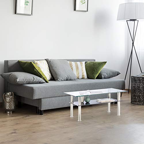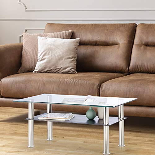 Relaxdays Tavolino Basso da Divano in Vetro, 2 Ripiani, Piano Trasparente, Gambe in Acciaio Inox, 100 x 60 x 43 cm, 60% 40%