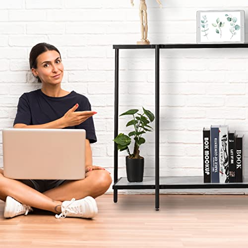 Relaxdays Tavolo Consolle, 2 Ripiani, Mobiletto Salotto Corridoio, in Vetro e Effetto Marmo, 80x110,5x36 cm, Nero/Bianco, 60% Acciaio 20% Fibra di Legno, 1 pz