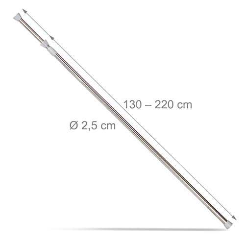 Relaxdays Asta Telescopica Estensibile, Bastone per Tende, a Pressione, Senza Forare, Acciaio, 130-220 cm