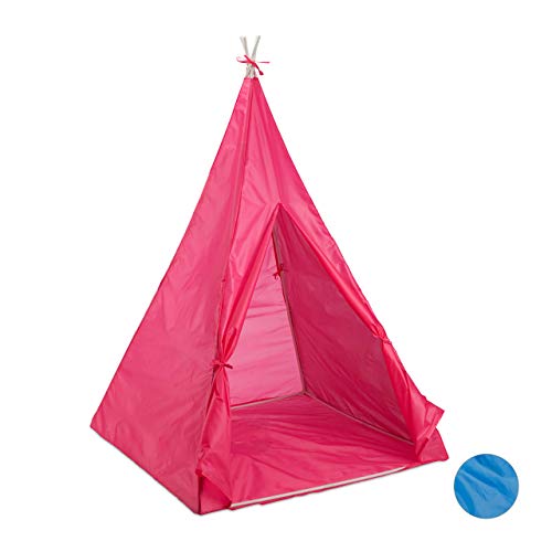 Relaxdays Tenda da Gioco per Ambienti Esterni e Interni, Wigwam con Base, per Bambini dai 3 Anni, 100x100 cm Fucsia, Colore rosa, 10025738_113