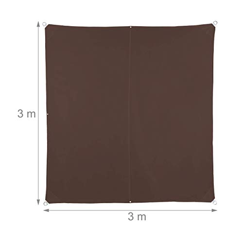 Relaxdays Tenda a Vela Quadrata, Idrorepellente, Anti UV, con Corde di Supporto, Terrazza, Giardino, LxP: 3x3 m, Marrone