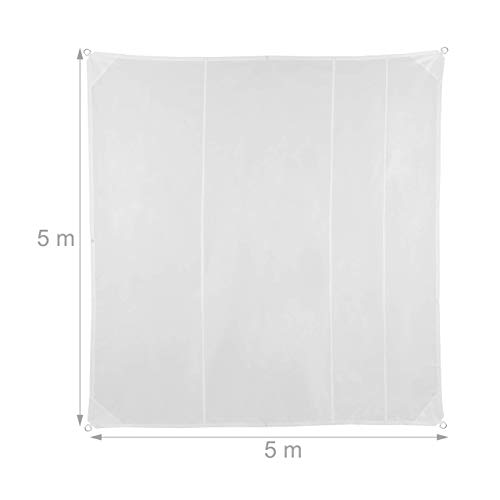 Relaxdays Tenda a Vela Quadrata, Impermeabile, Anti UV, con Corde di Supporto, Terrazza e Giardino, LxP: 5x5 m, Bianca, 5 x 5 m