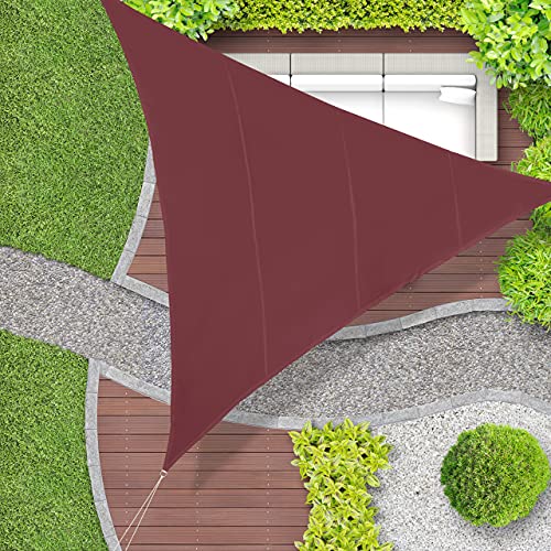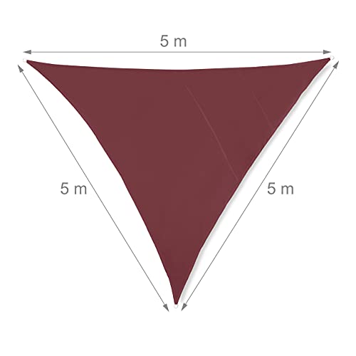 Relaxdays Tela Triangolare, Dimensioni 5x5x5 m, Impermeabile, Anti UV, Corde di Supporto, Terrazza Giardino, Bordeaux
