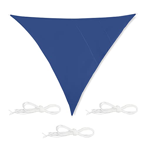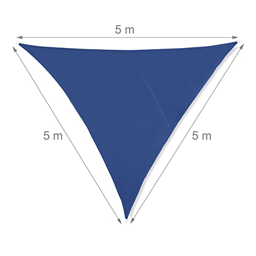 Relaxdays Tela Triangolare, Misure 5x5x5 m, Impermeabile, Anti UV, Corde di Supporto, Terrazza e Giardino, Blu