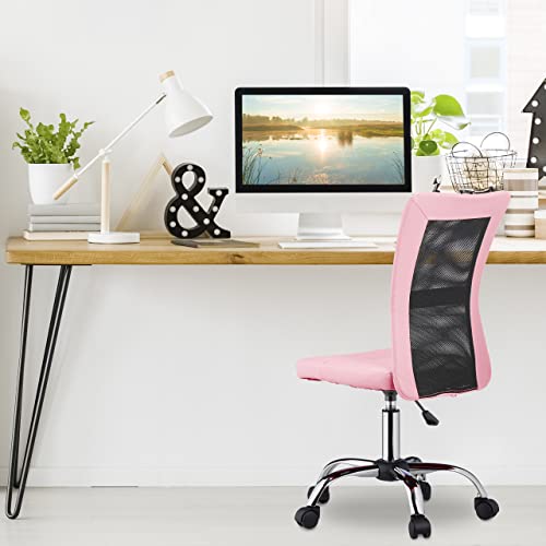 Relaxdays Ufficio, Sedia Girevole Regolabile in Altezza, ergonomica, Comoda, Portata 90 kg, 102 x 55 x 55 cm, PU, Metallo, Rete, Colore: Rosa