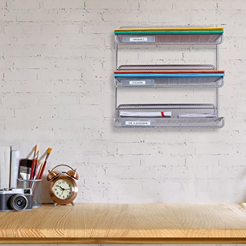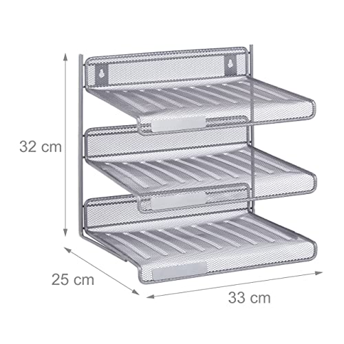 Relaxdays Vaschette Portadocumenti, Metallo, Montaggio a Parete o da Scrivania, Portalettere A4 32x33x25 cm, Argento