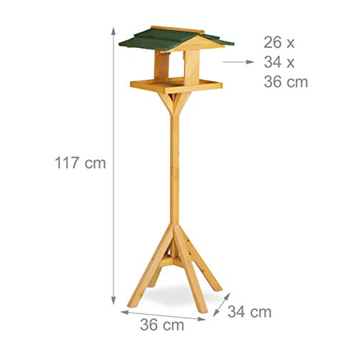 Relaxdays, Verde Casetta per Uccelli con Supporto, Autoportante, Giardino & Balcone, Mangiatoia, 117 cm, Legno Naturale Unisex Adulto, 117 x 34 x 36 cm