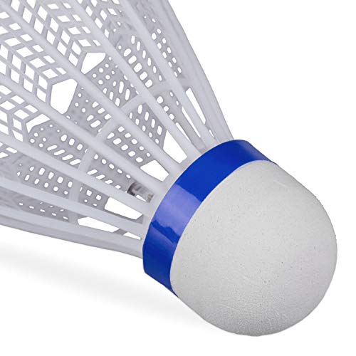Relaxdays 96x Volano Badminton, Set di Palline Luminose, Palle Gomma Piuma, Luce LED, HxD: 8,5 x 6,5 cm, Esterno, Bianco