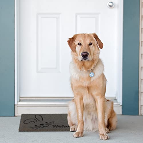 Relaxdays Zerbino con Coniglio, Fibra di Cocco, Frase Welcome, Interni ed Esterni, 40x60 cm, Antiscivolo, Grigio/Nero, 90% 10% plastica