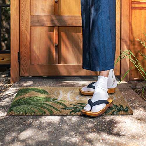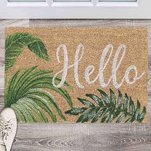 Relaxdays Zerbino in Fibra di Cocco, 40x60 cm, Design Hello con Foglie, Interni e Esterni, Antiscivolo, Naturale Verde, 80% 20% plastica