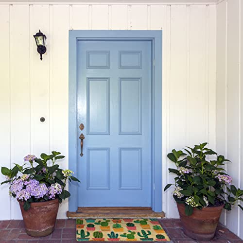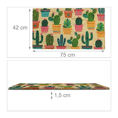 Relaxdays Zerbino in Fibra di Cocco, 75x42 cm, Design Cactus, Tappetino da Interni ed Esterni, Antiscivolo, Multicolore