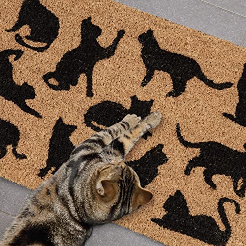 Relaxdays Zerbino con Gatti, Realizzato in Fibra di Cocco, Interni & Esterni, LxP: 40x60 cm, Antiscivolo, Naturale/Nero, 1 pz