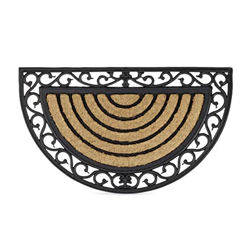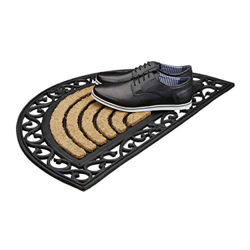 Relaxdays Zerbino Ingresso Casa, 75x45 cm, Tappetino Semicerchio Classico, Fibra di Cocco, Indoor & Outdoor, Multicolore, Marrone, 50 x 65 cm