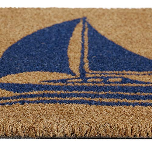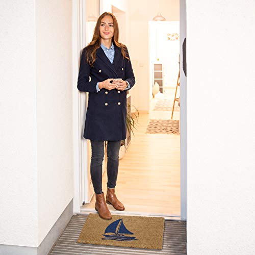 Relaxdays Zerbino Ingresso Casa, Design con Vela, 60x40 cm, Tappetino Interni & Esterni in Fibra di Cocco, Blu/Naturale, 1 pz