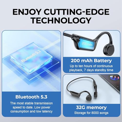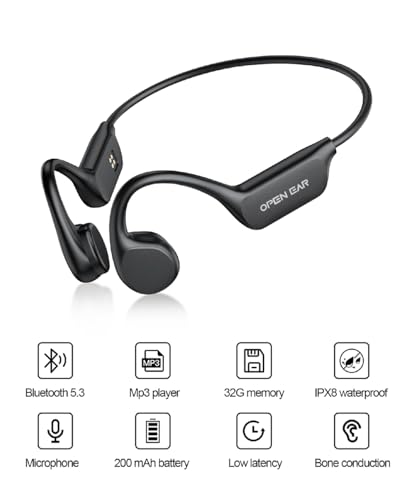 【32 GB DI MEMORIA INCORPORATA】: Gli auricolari a conduzione ossea con memoria integrata da 32 GB possono memorizzare circa 8000 brani e supportare MP3, WAV, WMA, AAC e FLAC e puoi ascoltare senza dispositivi. L'acqua interferisce con il segnale Bluetooth, passare alla modalità MP3 quando si nuota sott'acqua.