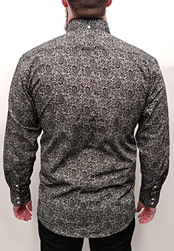 Camicia uomo nero motivo Paisley design classico mod vintage 100% cotone