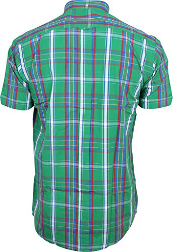 Relco Mens Verde Camicia a Quadretti Tartan Maniche Corte Modello Aderente retrò Indie Anni '60