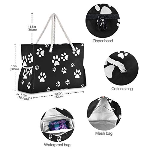 RELEESSS - Borsa da spiaggia da viaggio, con stampa di zampe, con zip, impermeabile, borsa a tracolla per donne e ragazze, unisex