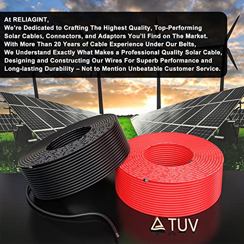 RELIAGINT Kit Cavo per Pannelli Solari 20m - Connettore in Rame Stagnato Resistente a Intemperie, Ruggine e Ossidazione - Cavo Solare per Fotovoltaico 9AWG (6mm²) - Conduttori Precrimpati 1.500 V