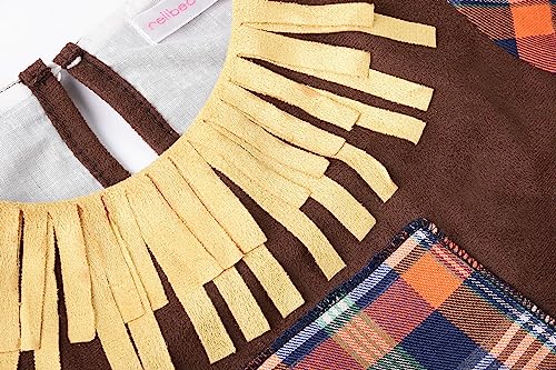 ReliBeauty Costume Spaventapasseri Patchwork Vestito Spaventapasseri Halloween Bambina con Cappello, 7-8 anni(120 cm)