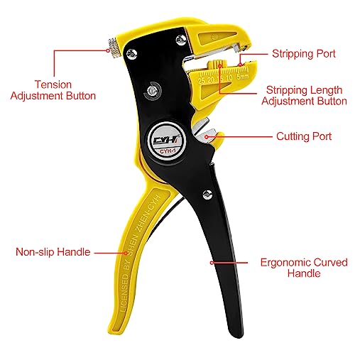 【Autoregolazione】 Lo pinza spelafili regola la manopola di tensione in base alla tensione del filo, che può impedire che l'anima di rame del filo venga danneggiata da una tensione eccessiva. Sono presenti scale a doppia faccia sulla testa, statore a lunghezza fissa e la lunghezza di spelatura può essere personalizzata in base alle proprie esigenze.