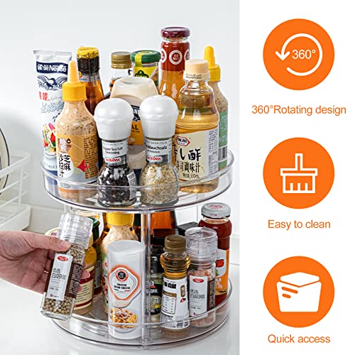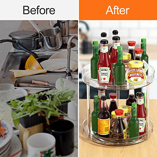 Relota 360° Portaspezie Girevole, per Cucina 2 Ripiani Piatto Trasparente Piccolo, Vassoio Organizer Multifunzionale per Armadi Dispensa Piani Lavoro